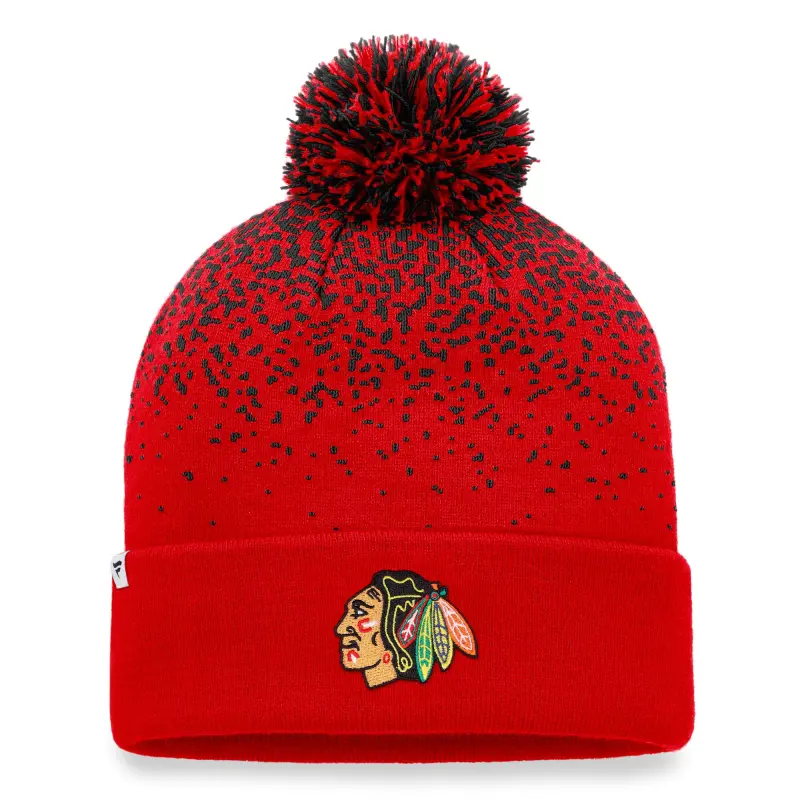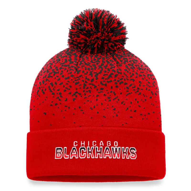 Men’s Fanatics Red Chicago Blackhawks Iconic Gradient Cuffed Knit Hat with Pom