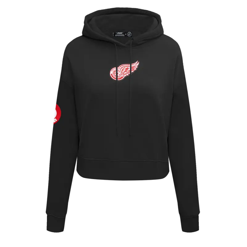 NHL DETROIT RED WINGS CLASSIC WOMEN’S FLEECE CROPPED PULLOVER HOODIE (BLACK)