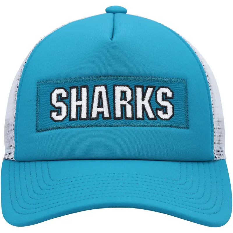 Men’s adidas Teal/White San Jose Sharks Team Plate Trucker Snapback Hat