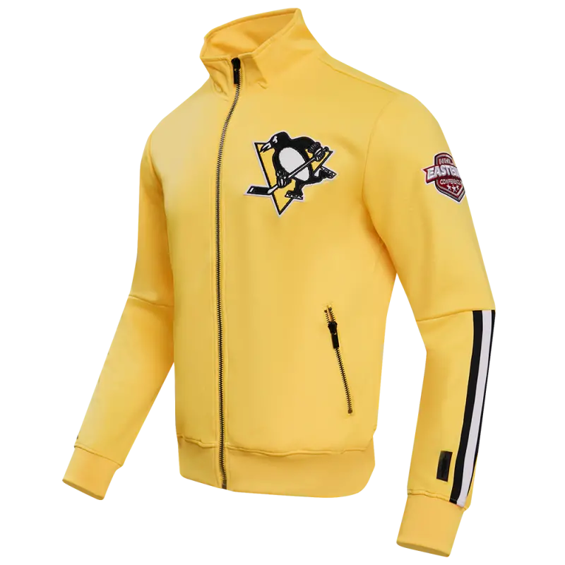 NHL PITTSBURGH PENGUINS CLASSIC CHENILLE DOUBLE KNIT TRACK JACKET (YELLOW\/BLACK)
