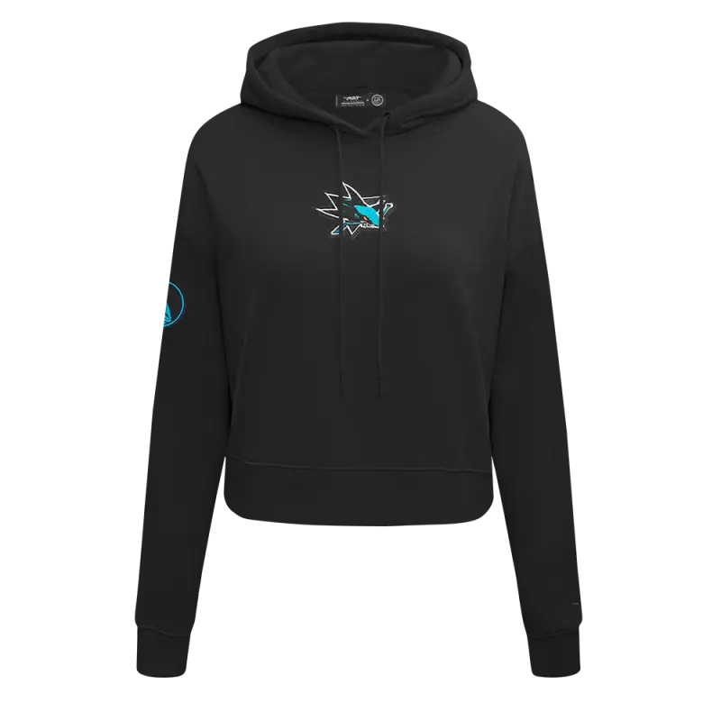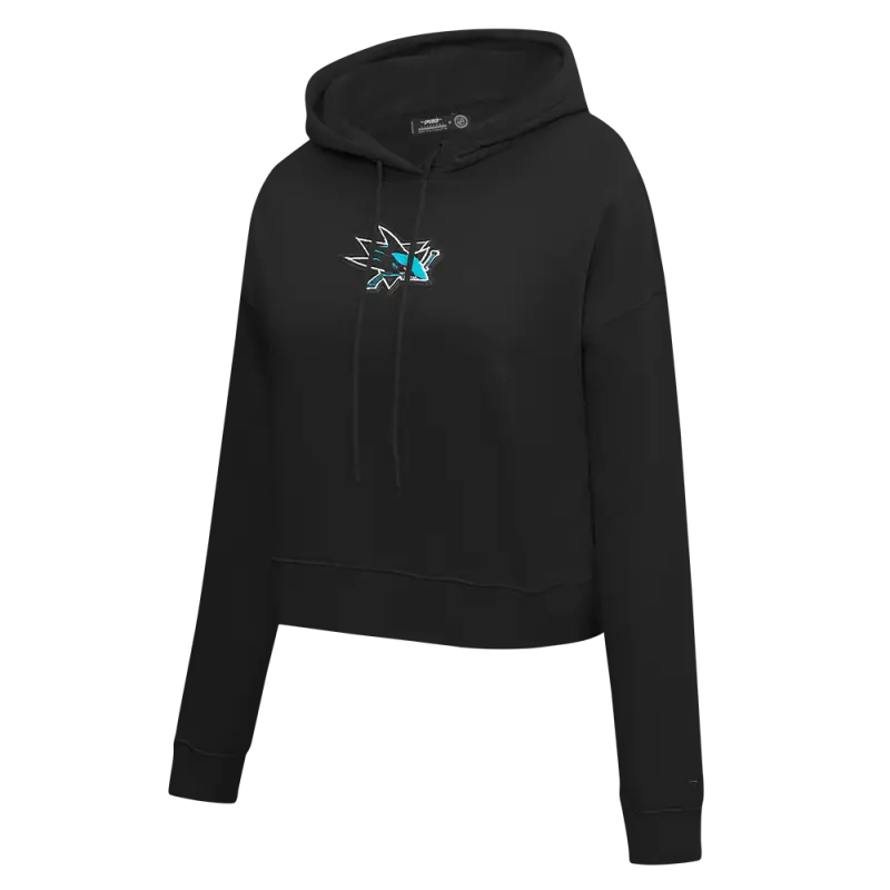NHL SAN JOSE SHARKS CLASSIC WOMEN’S FLC CROPPED PO HOODIE (BLACK)