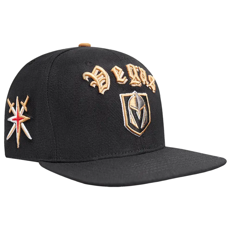 NHL VEGAS GOLDEN KNIGHTS OLD ENGLISH UNISEX 6 PANEL SNAPBACK HAT (BLACK)