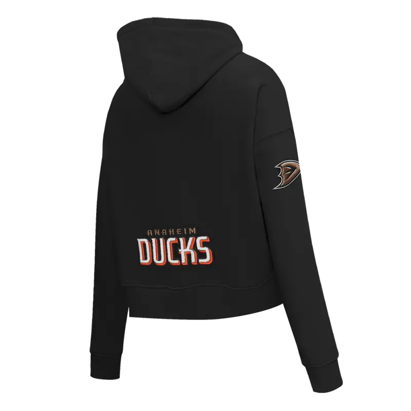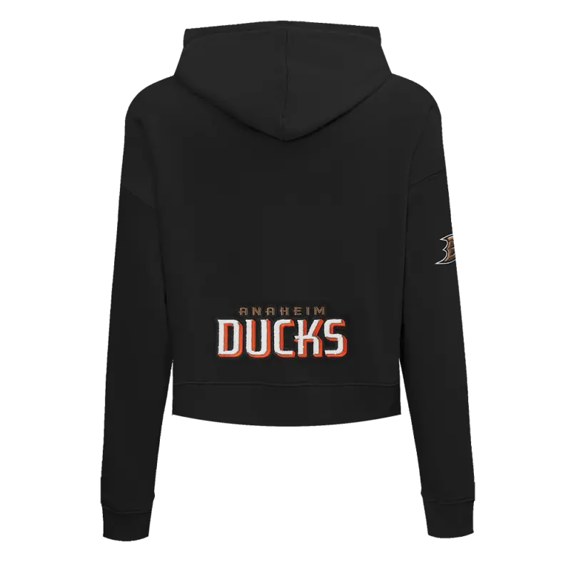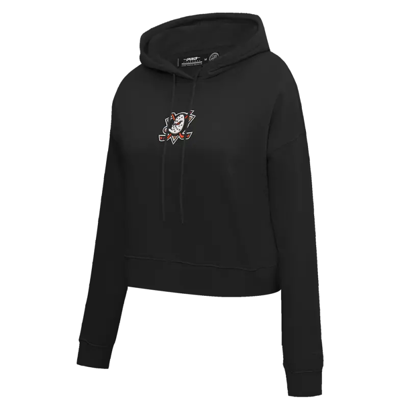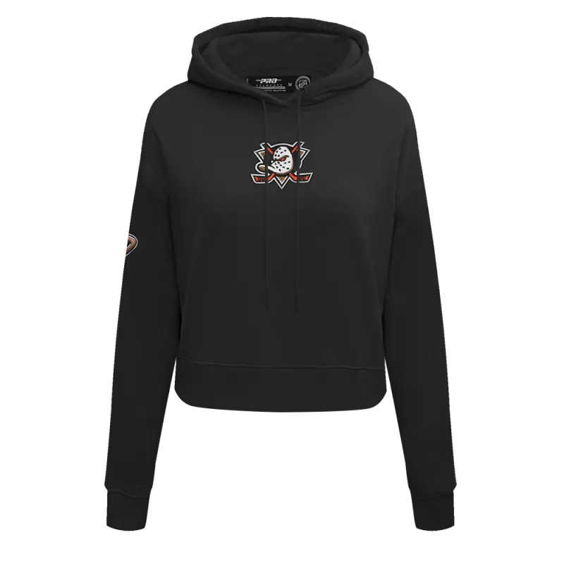 NHL ANAHEIM DUCKS CLASSIC WOMEN’S CROPPED PULLOVER HOODIE (BLACK)