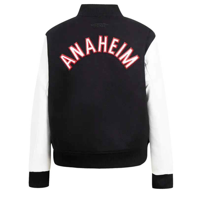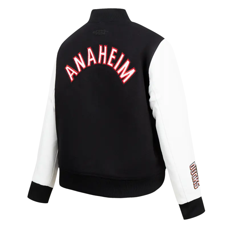 NHL ANAHEIM DUCKS CLASSIC WOMEN’S WOOL VARSITY JACKET (BLACK\/WHITE)