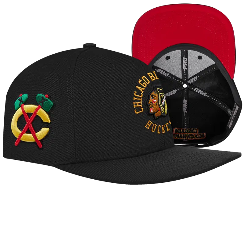 NHL CHICAGO BLACKHAWKS HYBRID SNAPBACK HAT (BLACK)