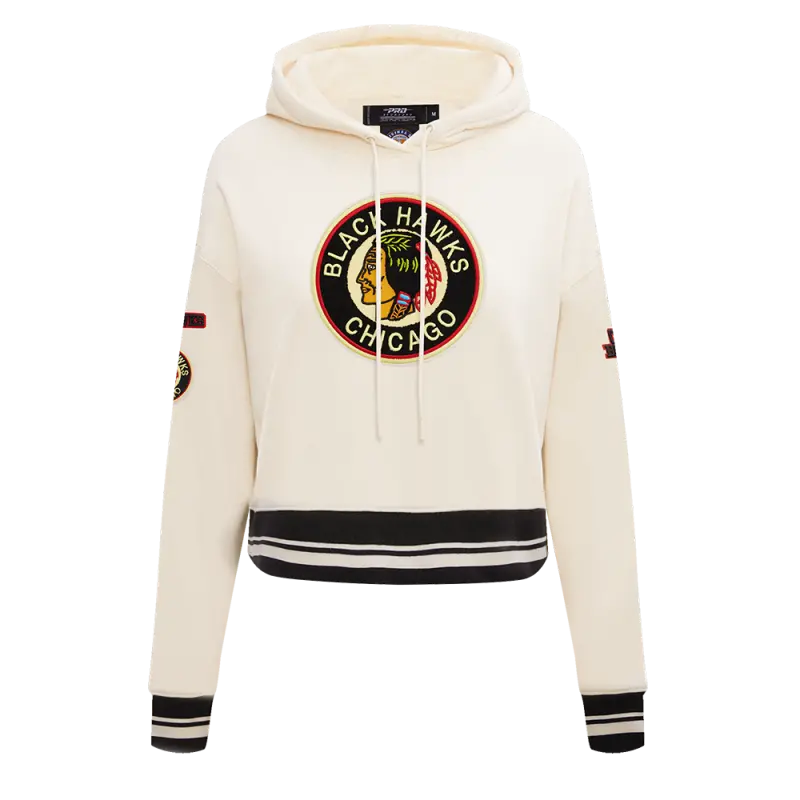 Home / Shop / NHL CHICAGO BLACKHAWKS RETRO CLASSIC WOMEN’S RIB CROPPED PULLOVER HOODIE (EGGSHELL\/ BLACK)