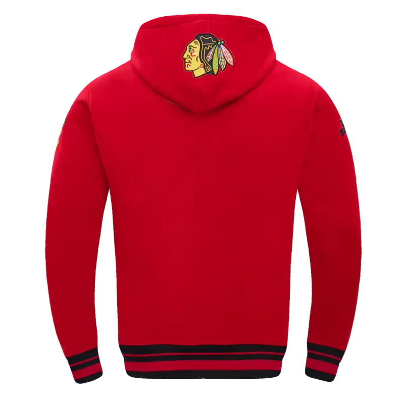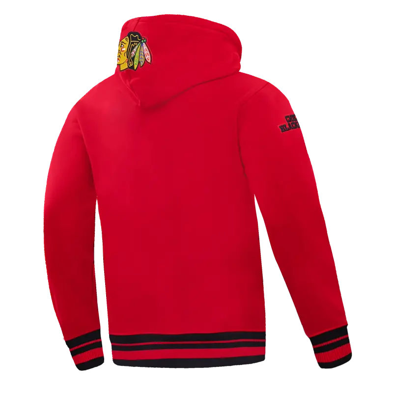 NHL CHICAGO BLACKHAWKS SCRIPT TAIL MEN’S RIB FLEECE PULLOVER HOODIE (RED\/BLACK)