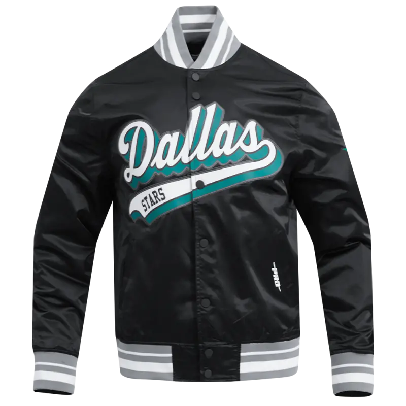 Home / Shop / NHL DALLAS STARS SCRIPT TAIL MEN’S SATIN JACKET (BLACK\/GRAY)