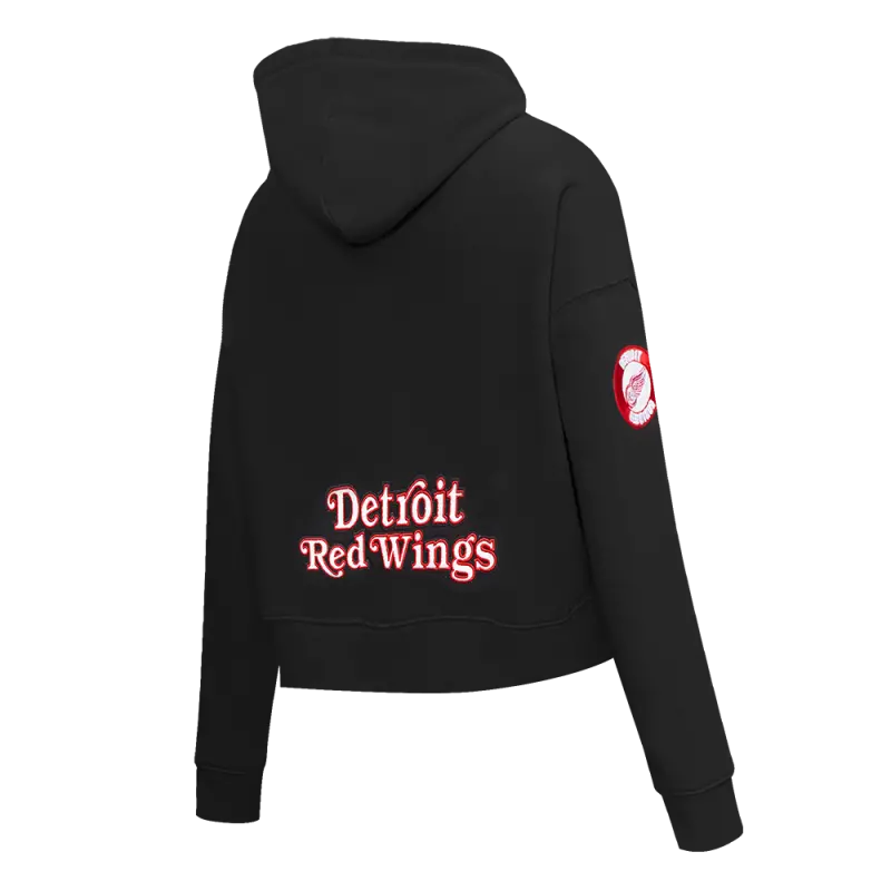 NHL DETROIT RED WINGS CLASSIC WOMEN’S FLEECE CROPPED PULLOVER HOODIE (BLACK)