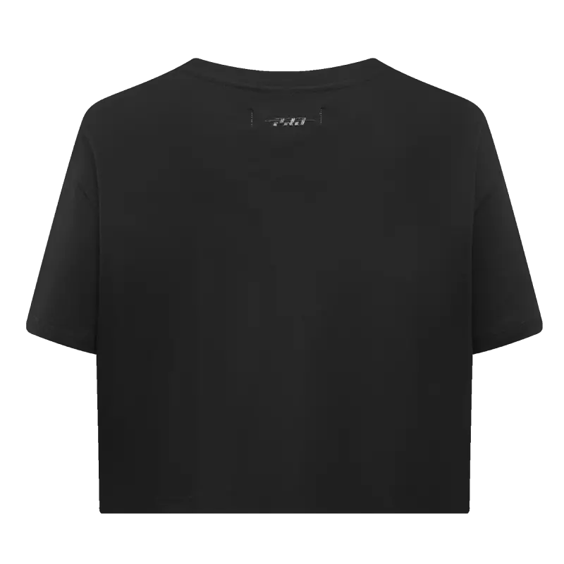 NHL DETROIT RED WINGS SCRIPT TAIL WOMEN’S SINGLE JERSEY BOXY TEE (BLACK)