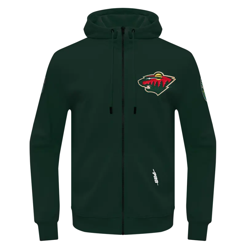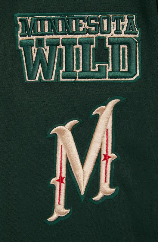 NHL MINNESOTA WILD CLASSIC CHENILLE MEN’S FULL ZIP PULLOVER HOODIE (FOREST GREEN)