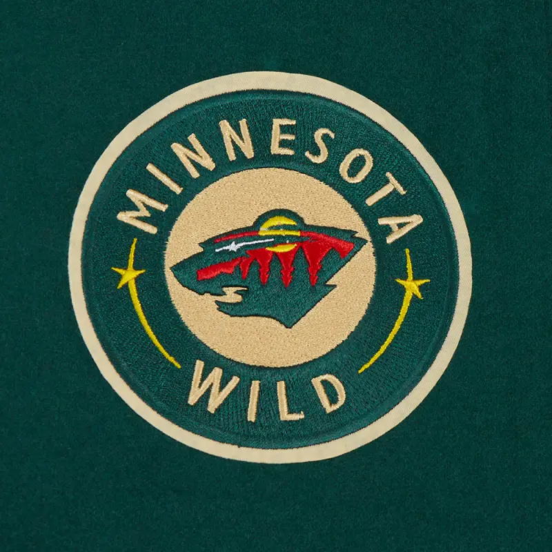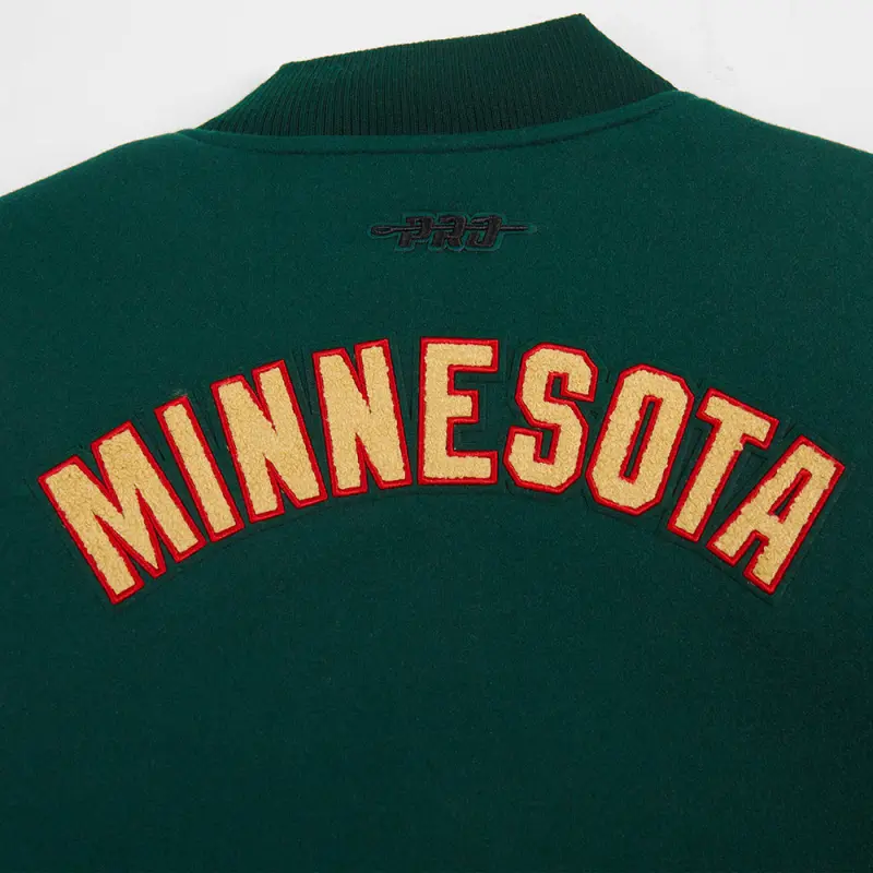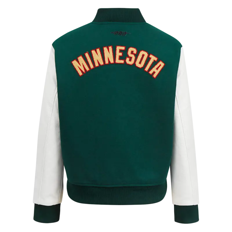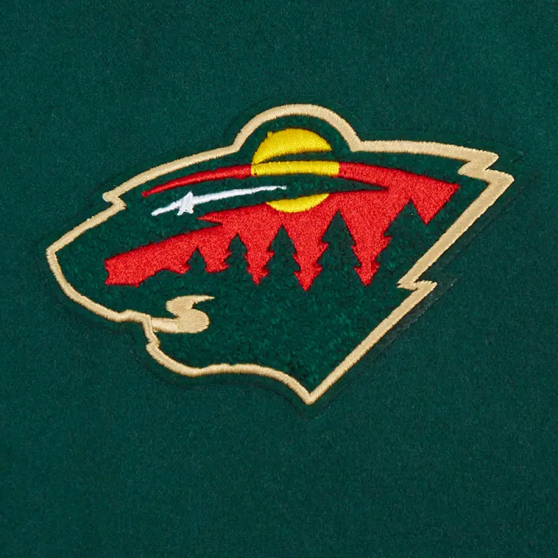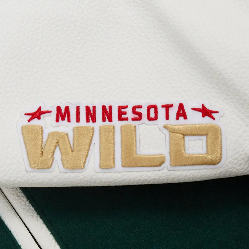 NHL MINNESOTA WILD CLASSIC WOMEN’S WOOL VARSITY JACKET (FOREST GREEN\/WHITE)
