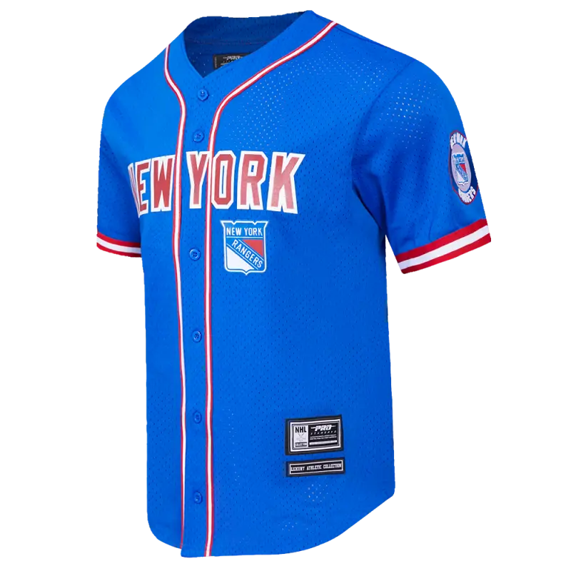 NHL NEW YORK RANGERS CLASSIC MEN’S MESH BUTTON DOWN JERSEY (ROYAL BLUE\/RED)