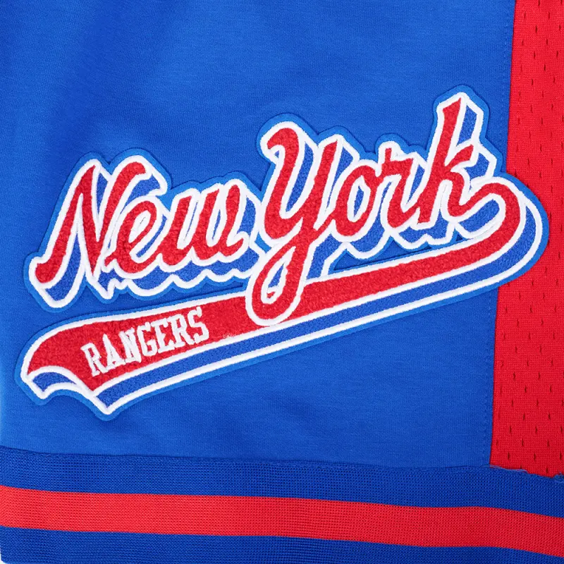 NHL NEW YORK RANGERS SCRIPT TAIL MEN’S DOUBLE KNIT 2.0 SHORT (ROYAL BLUE\/RED)