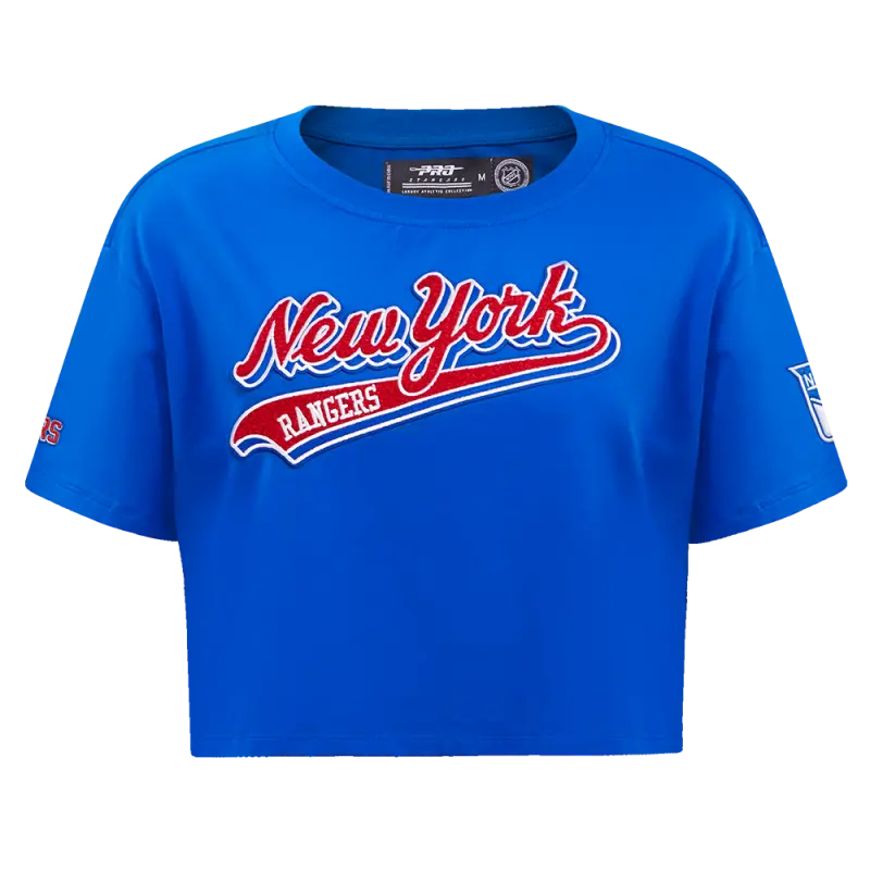 NHL NEW YORK RANGERS SCRIPT TAIL WOMEN’S SINGLE JERSEY BOXY TEE (ROYAL BLUE)