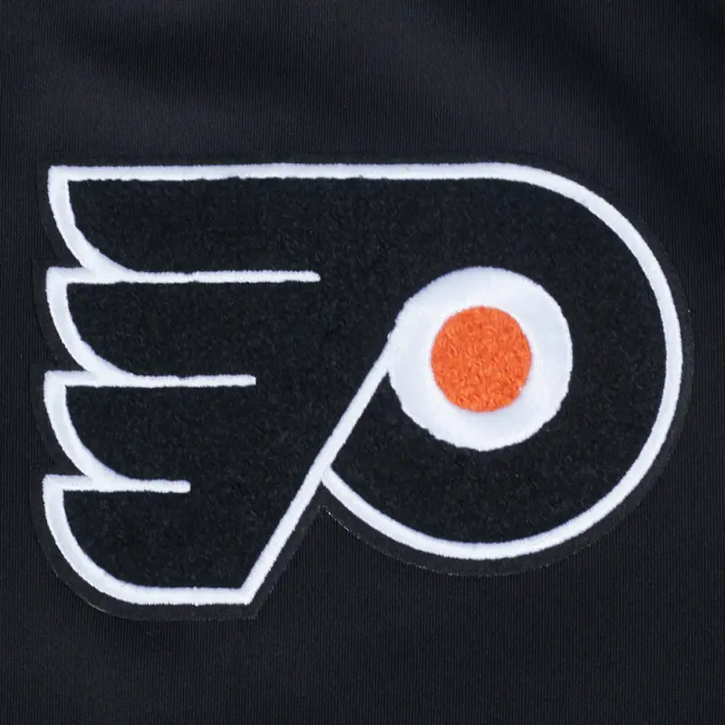 NHL PHILADELPHIA FLYERS CLASSIC CHENILLE MEN’S DOUBLE KNIT TRACK JACKET (BLACK)