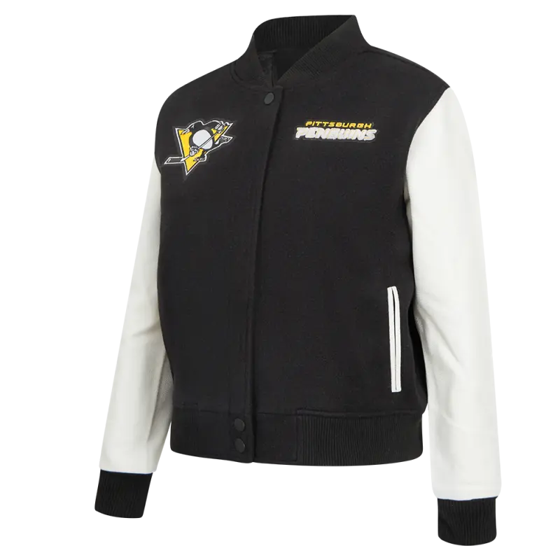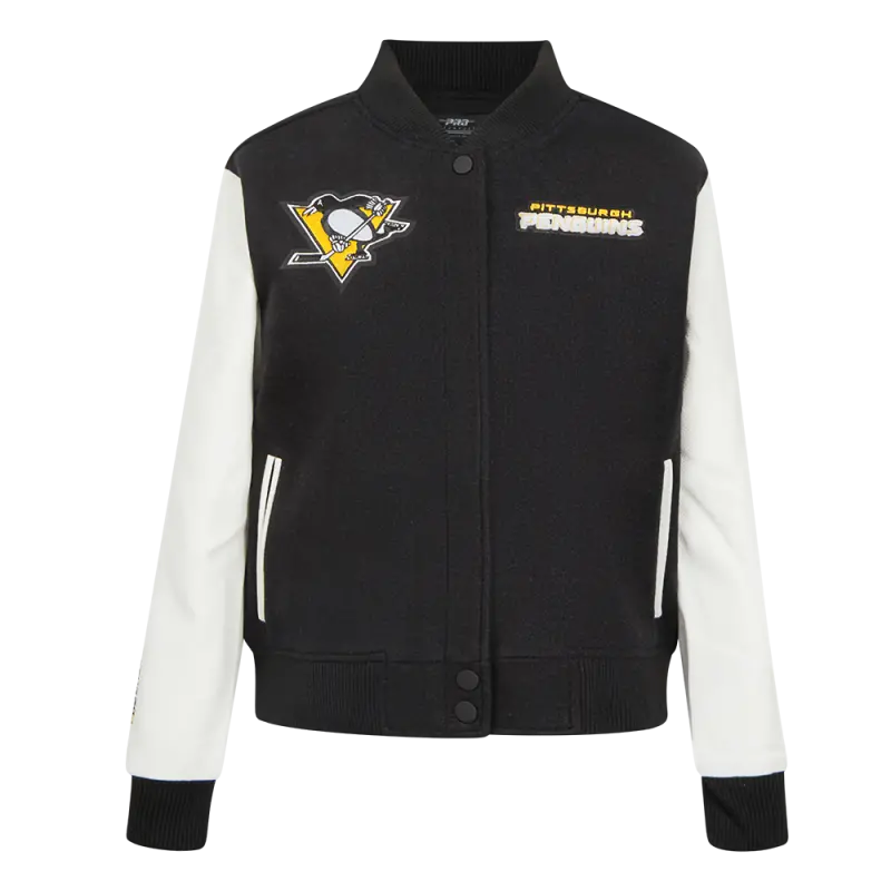 NHL PITTSBURGH PENGUINS CLASSIC WOMEN’S VARSITY JACKET (BLACK\/WHITE)
