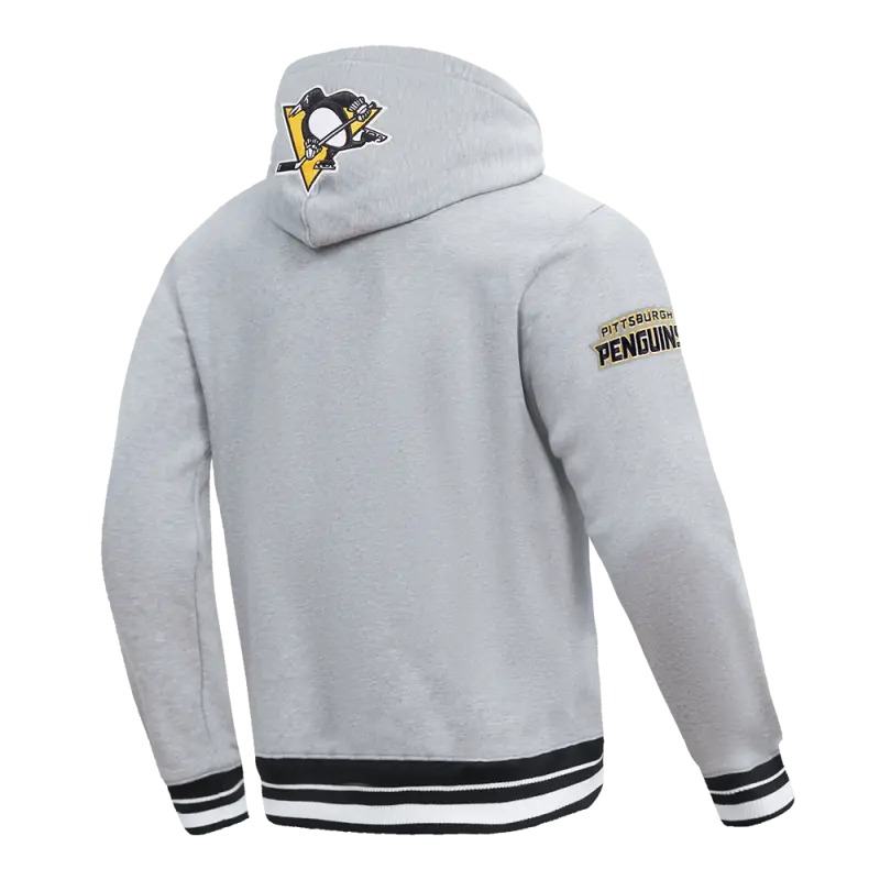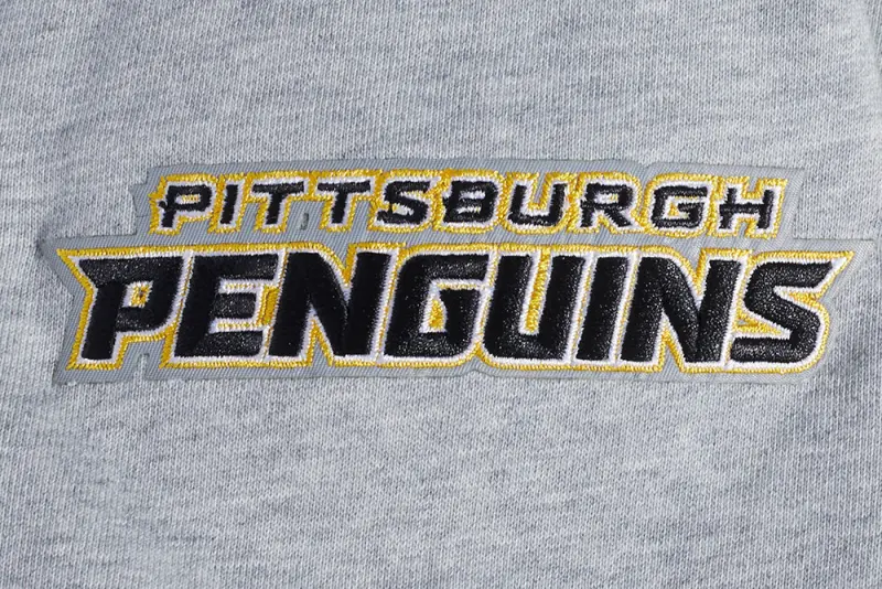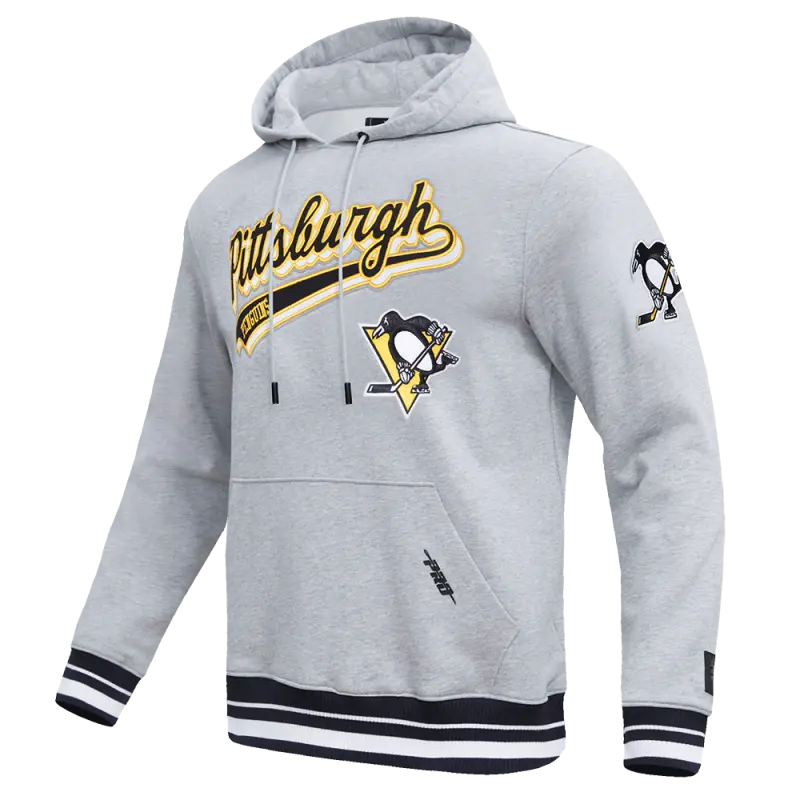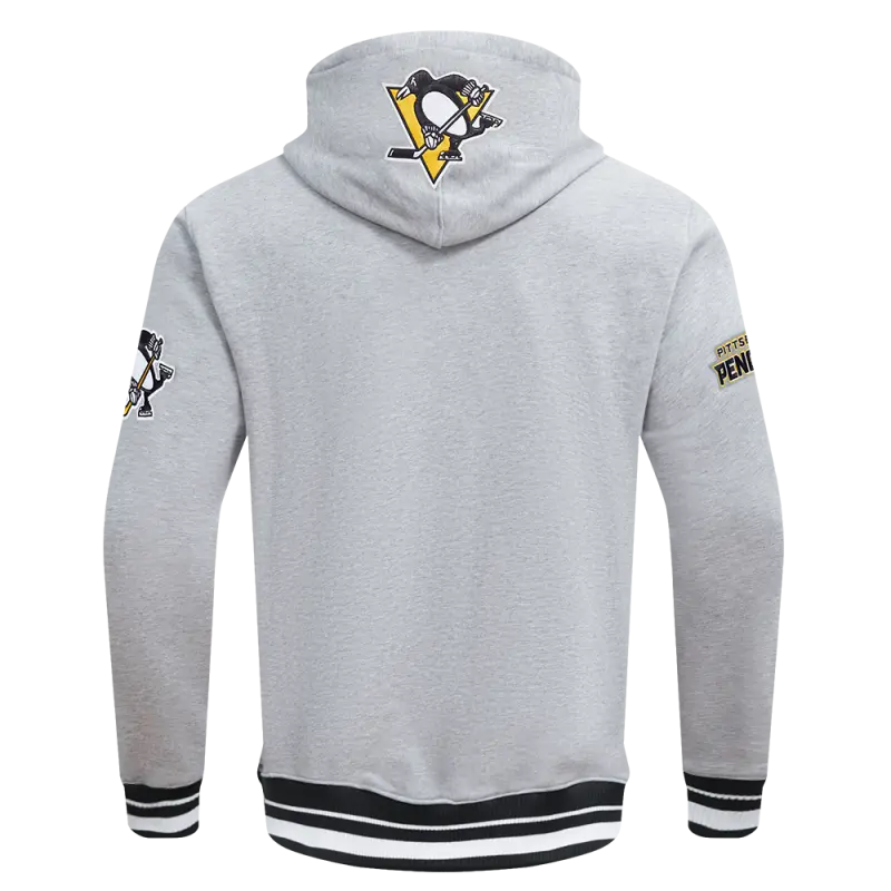 NHL PITTSBURGH PENGUINS SCRIPT TAIL MEN’S RIB FLEECE PULLOVER HOODIE (HEATHER GRAY\/BLACK)