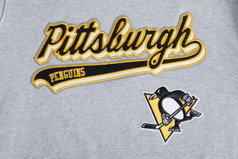 Home / Shop / NHL PITTSBURGH PENGUINS SCRIPT TAIL MEN’S RIB FLEECE PULLOVER HOODIE (HEATHER GRAY\/BLACK)