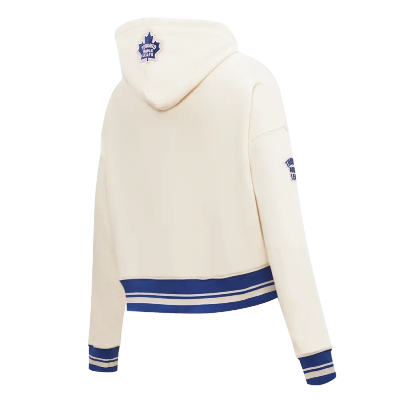 NHL TORONTO MAPLE LEAFS RETRO CLASSIC WOMEN’S RIB CROPPED PULLOVER HOODIE (EGGSHELL\/DODGER BLUE)