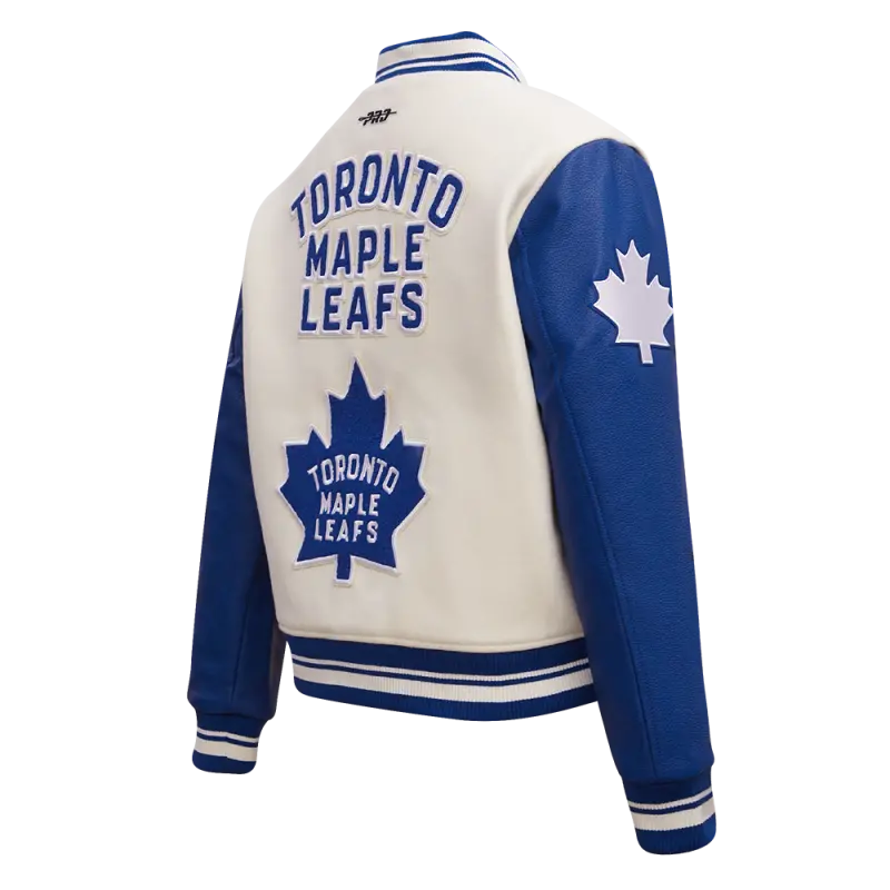 NHL TORONTO MAPLE LEAFS RETRO CLASSIC WOMEN’S RIB WOOL VARSITY JACKET (EGGSHELL\/DODGER BLUE)
