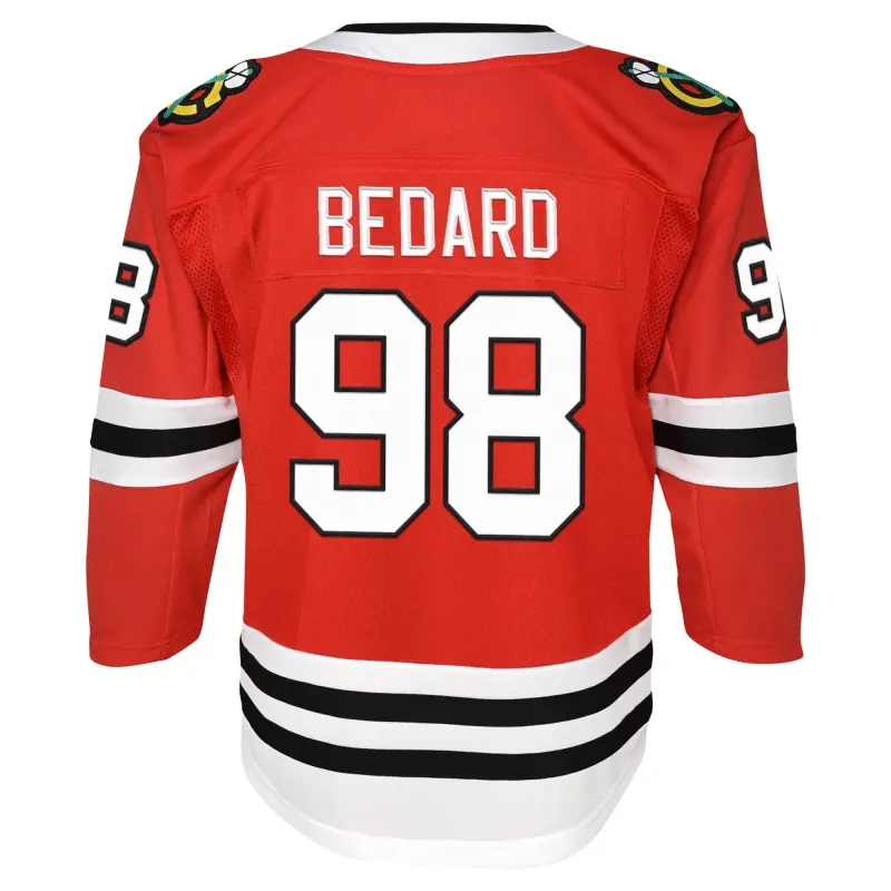 • Help your youngster celebrate their favorite Chicago Blackhawks player with this Connor Bedard Premier Player jersey. The bold design and crisp team graphics will make this unique jersey a staple in their Chicago Blackhawks-inspired wardrobe. There is no better way for them to showcase their unrivaled team spirit.